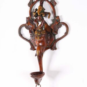 ₹5,000.00Original price was: ₹5,000.00.₹4,200.00Current price is: ₹4,200.00.Brand : Indian Handicrafts Code : IHAL3311 DETAILSMaterials: BrassHeight : 17 inchesWidth & Depth: 8 x 5 inchesWeight: 2 kg- Ganesha dances on top of an elephant head which holds a deep or lamp in his trunk which is used as a lamp for Diwali festivals or for special puja, you can add ghee and a wick into the lamp to use it