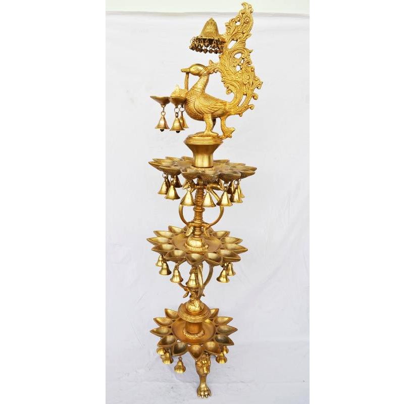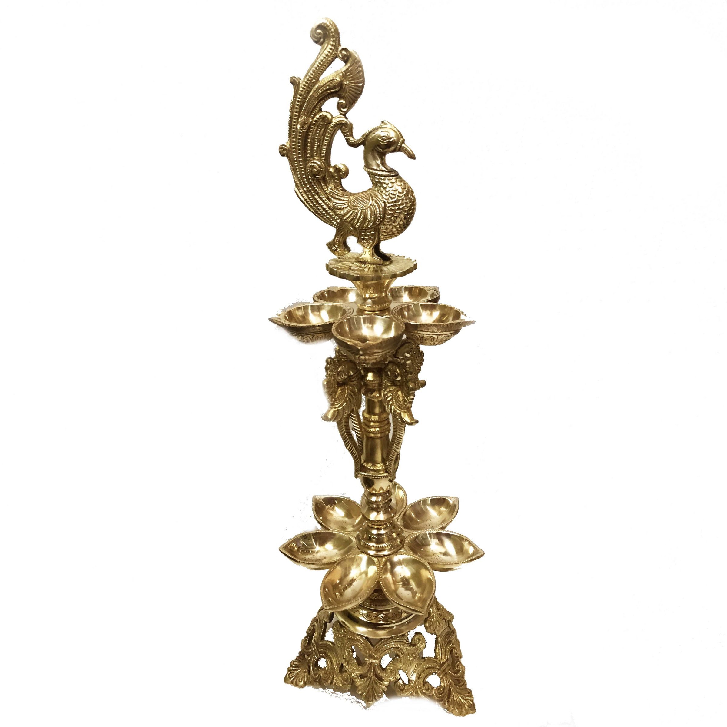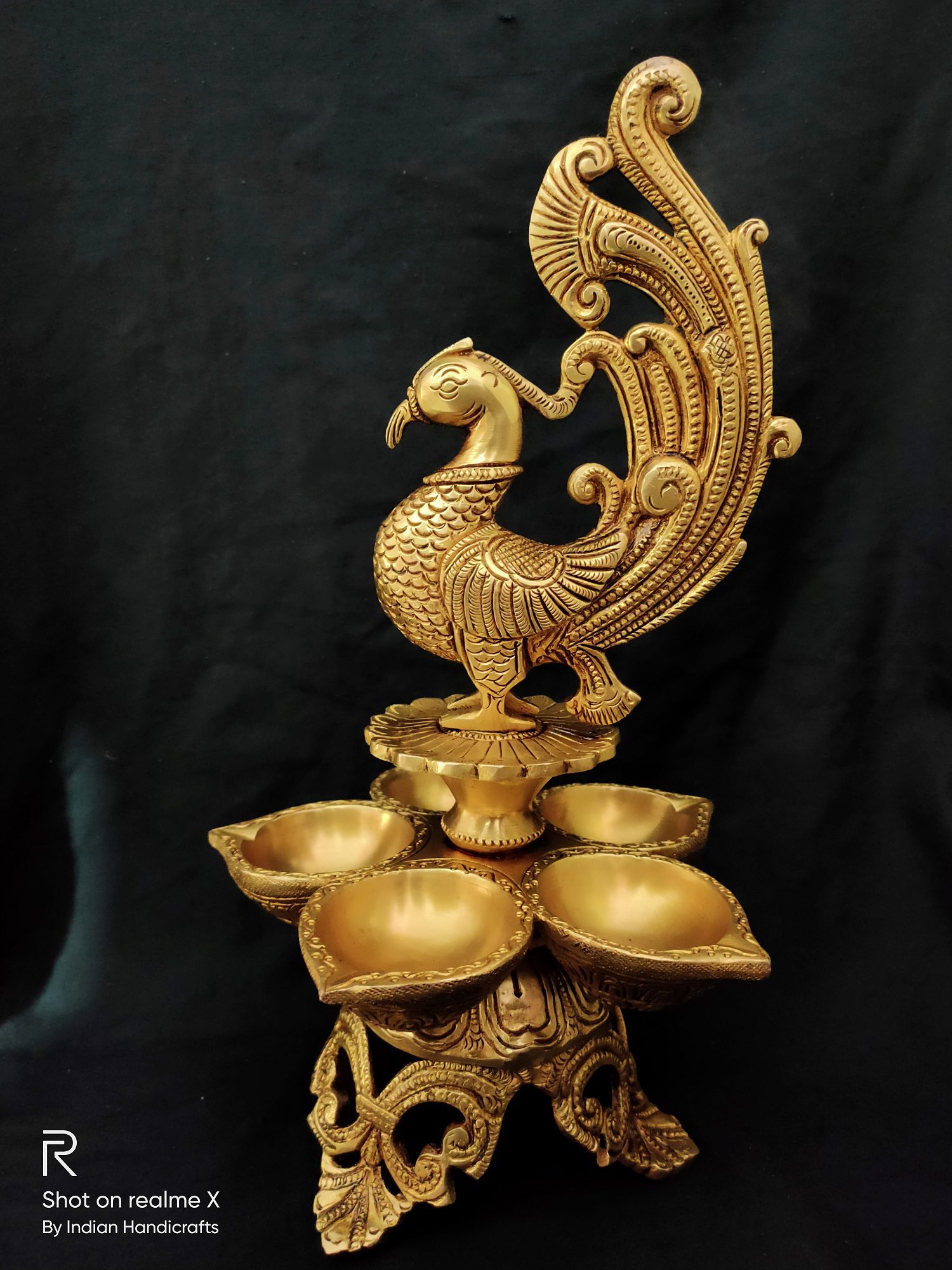 Beautiful Peacock Shape 3 Floor Brass Metal Hand Made Oil Lamp