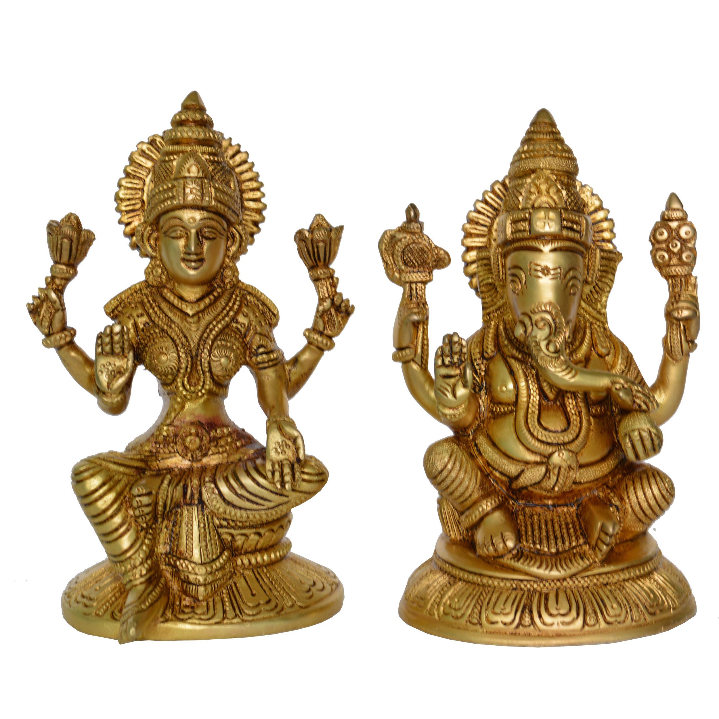 Beautiful Brass Pair Of Laxmi-Ganesha In Brass Metal