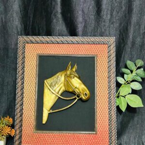 The Framed horse Brass Idol On brocket cloth Wall Hanging by indian handicrafts is a stunning piece of brass wall decor. This exquisite wall hanging is made with premium quality raw brocket, offering a luxurious and elegant touch to any space. Elevate your home decor with this unique wall hanging.