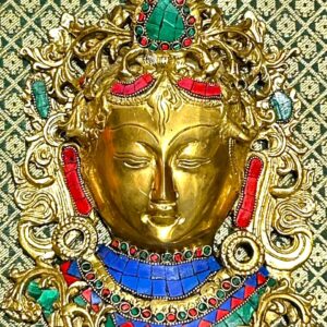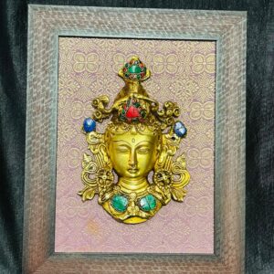 Brass Devi Tara Mask Wall-Hanging in stone work with Framed 13 x 10 inch