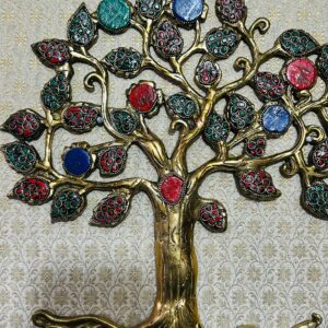 - The Framed Brass KALPAVIRUKSHA TREE On brocket cloth Wall Hanging by Indian Handicrafts is a stunning piece of brass wall decor. This exquisite wall hanging is made with premium quality raw brocket, offering a luxurious and elegant touch to any space. With its finely detailed brass idol, this product adds a divine and artistic element to your walls. Elevate your home decor with this unique and spiritually-inspired wall hanging.