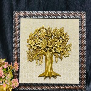 - The Framed Brass KALPAVIRUKSHA TREE On brocket cloth Wall Hanging by Indian Handicrafts is a stunning piece of brass wall decor. This exquisite wall hanging is made with premium quality raw brocket, offering a luxurious and elegant touch to any space. With its finely detailed brass idol, this product adds a divine and artistic element to your walls. Elevate your home decor with this unique and spiritually-inspired wall hanging.Material: Brass, brocket cloth, synthetic molding