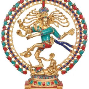 24 x 21 x 5 inch 13.750 KG Brand : Indian Handicrafts Code : IHN805 In a marvelously unified and dynamic composition expressing the rhythm and harmony of life, Nataraj is shown with four hands represent the cardinal directions. He is dancing, with his left foot elegantly raised and the right foot on a prostrate figure—’Apasmara Purusha’, the personification of illusion and ignorance over whom Shiva triumphs. The upper left-hand holds a flame, the lower left-hand points down to the dwarf, who is shown holding a cobra. This product made Of Brass Material and Beautifully to make the figure look as real. A Genuine Indian Work Of Art Produced With Traditional Casting Technique By Artisans In India. Use the statue to bring a touch of Indian culture to your Home Décor ₹20,625.00Brass Natraj | Dancing Shiva 24 Inch