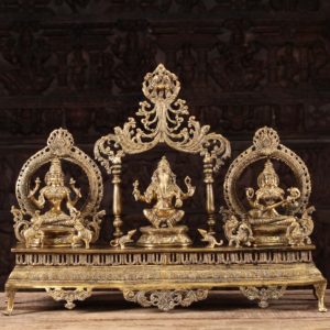 Brass Statue Set Ganesh, Lakshmi & Saraswati 20″
