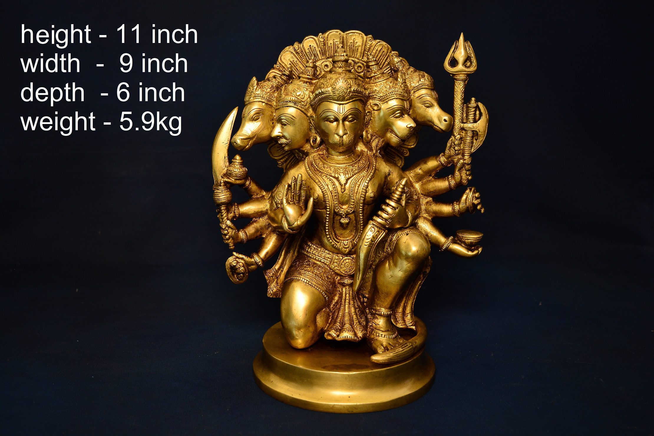 Brass Hanuman | Bajrang Bali | Panchmukhi Hanuman 11 Inch Sitting