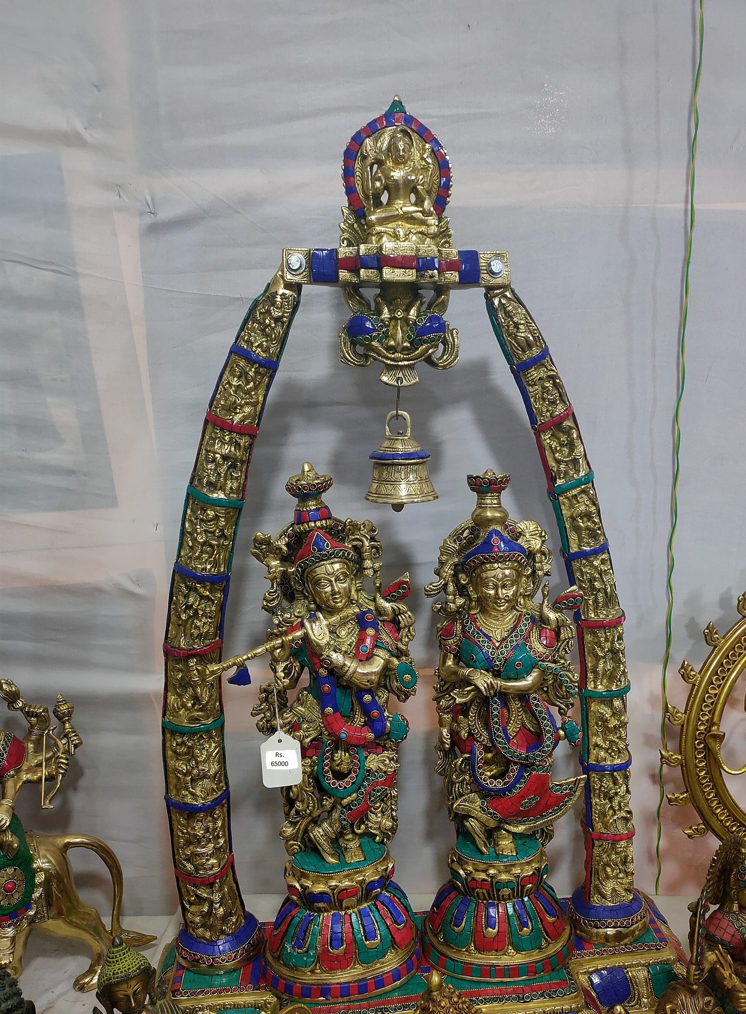 Brass Krishna Radha Standing Fine Carving With Leela Carved Arch 42 Inch