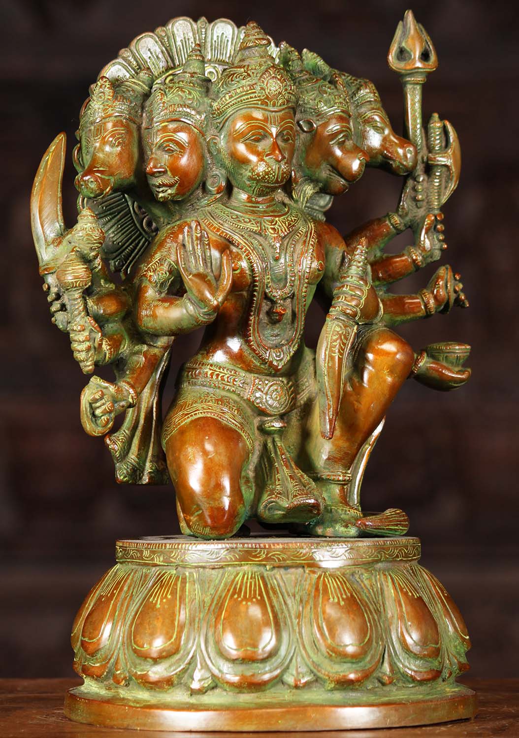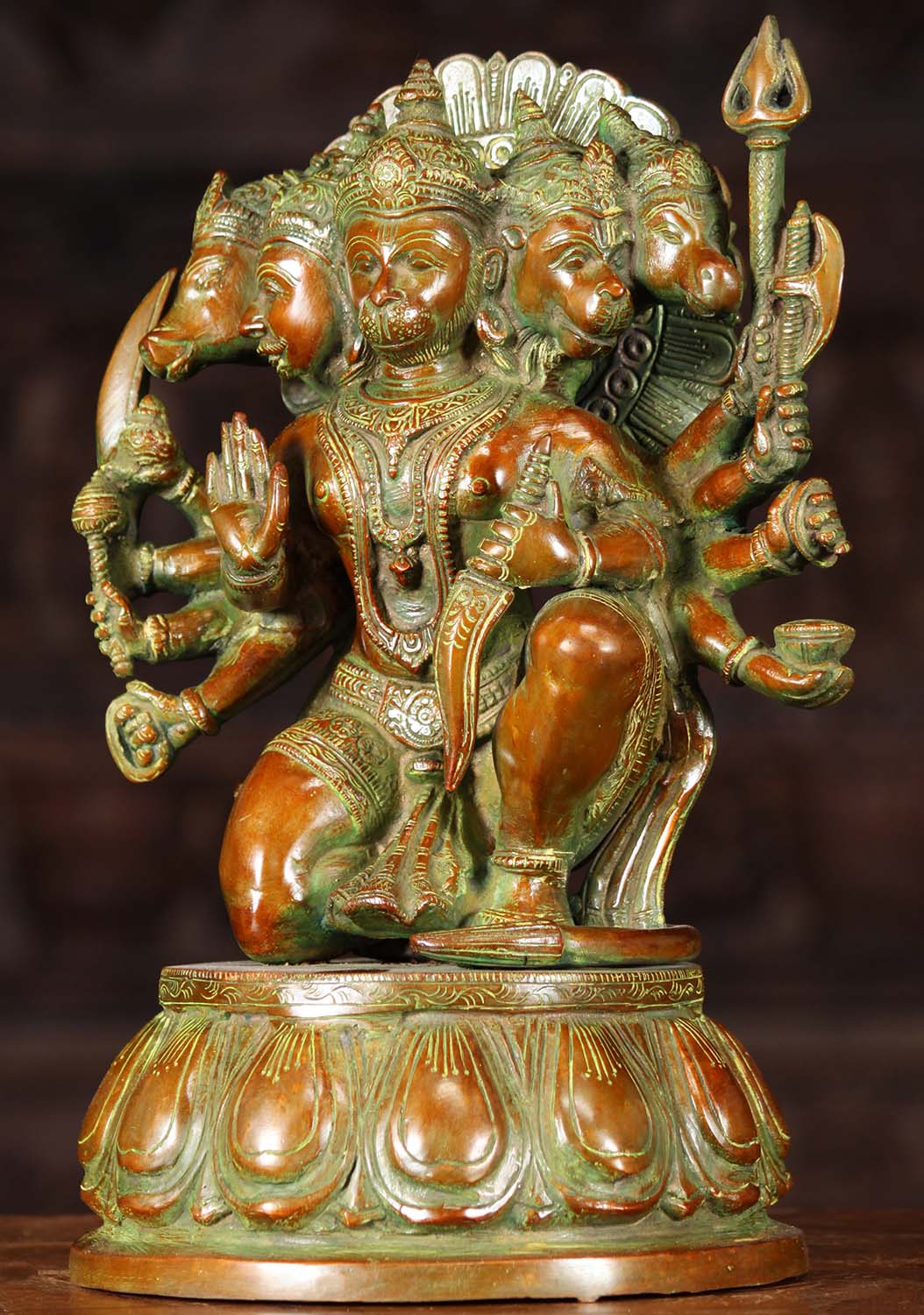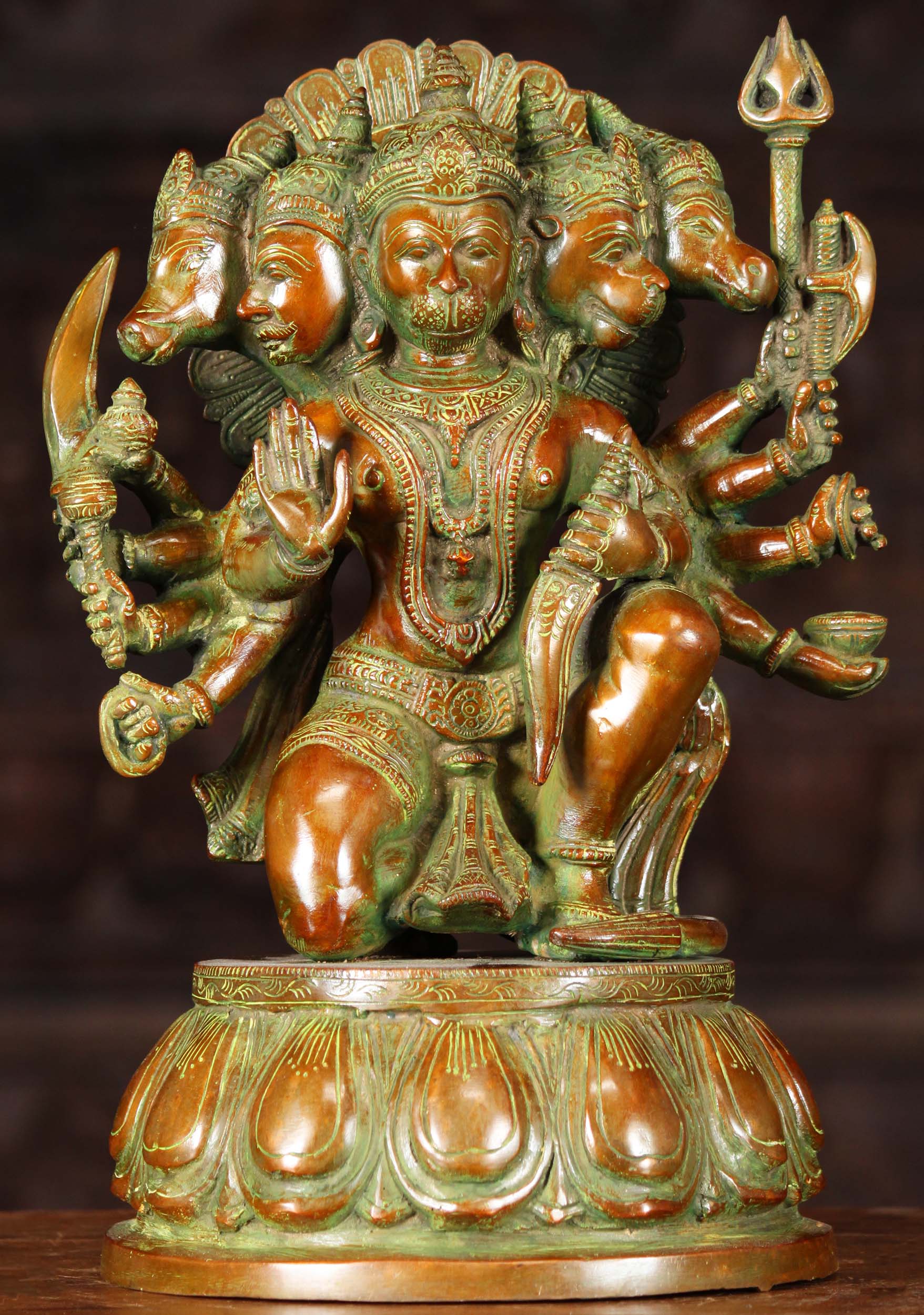 Brass Panchamukhi Hanuman Statue 5 Heads 13 inch