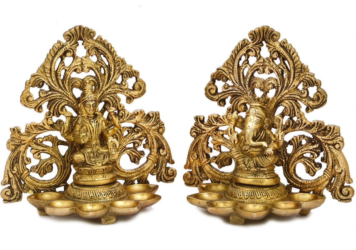 Brass Ganesh Laxmi 6 Diya Wall Hang Pair