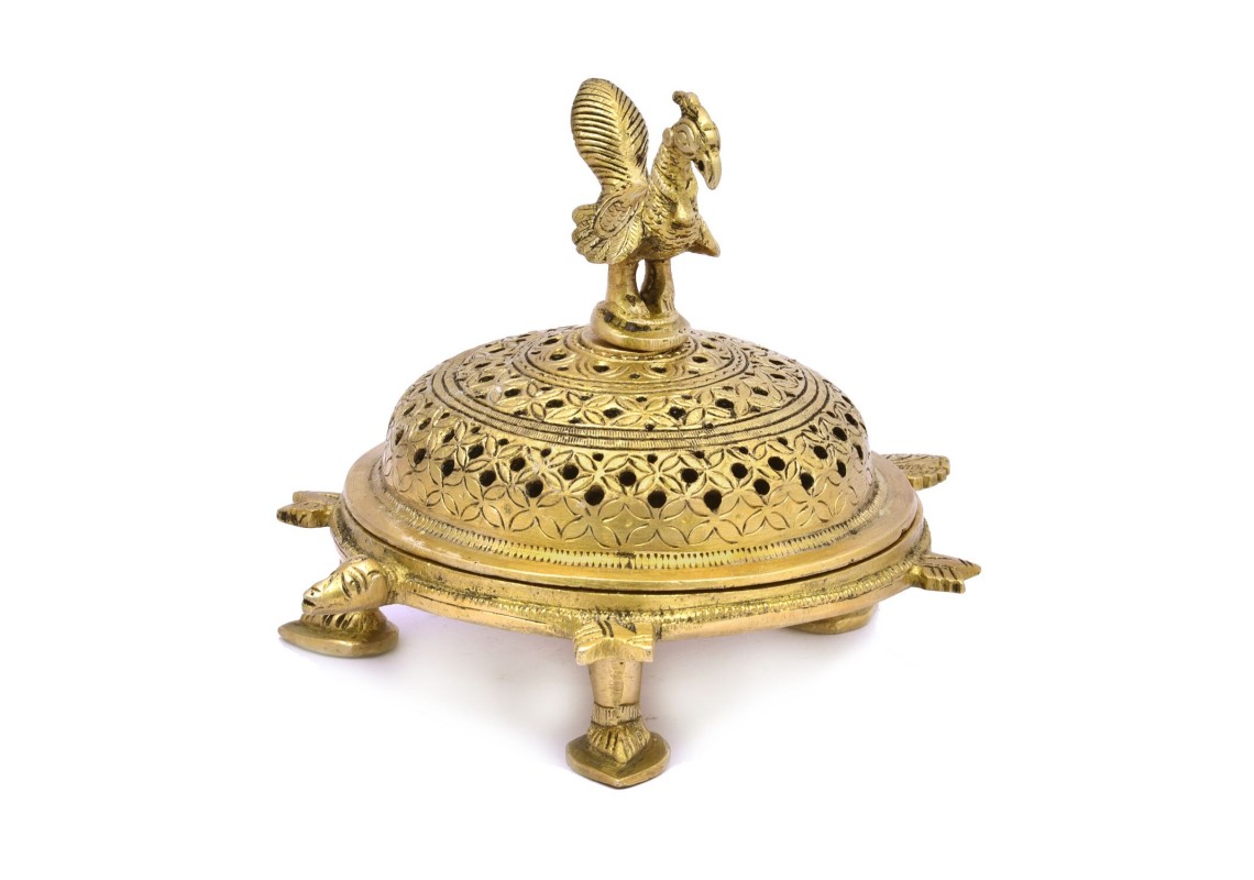 Brass peacock dhoop burner 6 inch