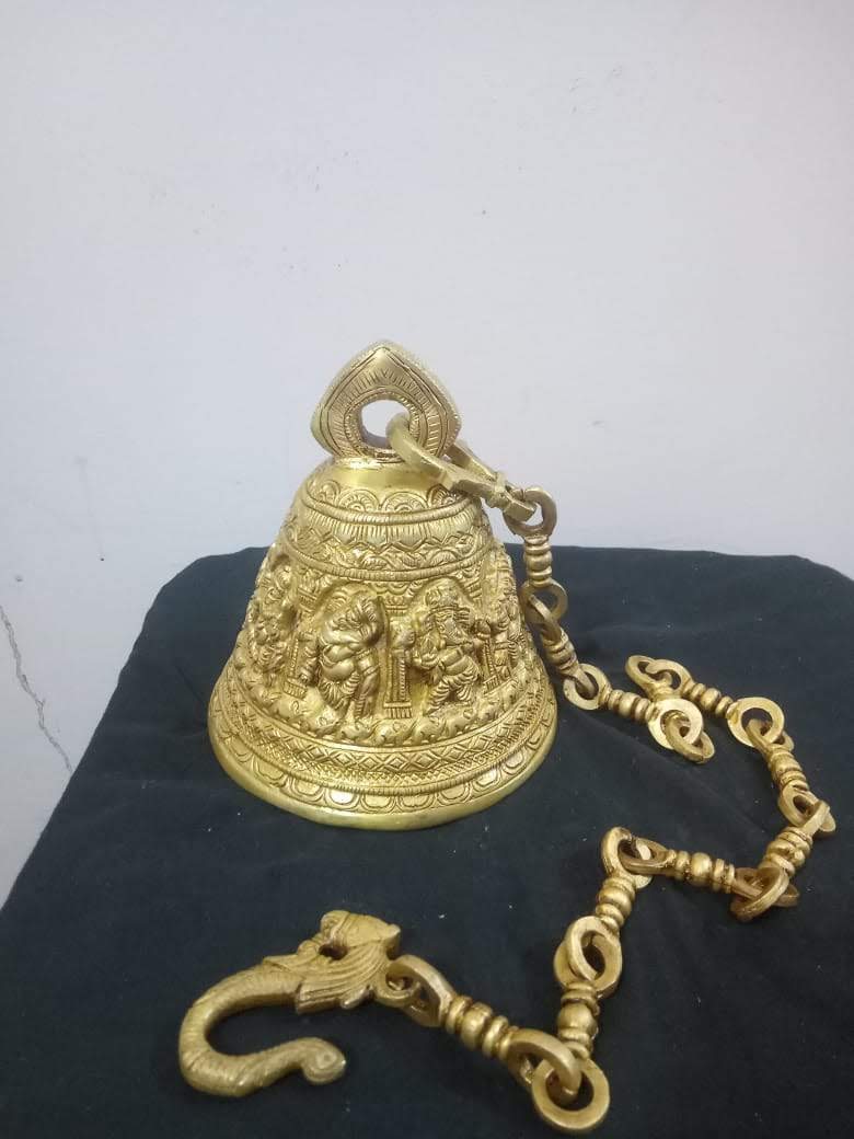 Handicraft Work Hindu Religious Bell made in Brass Metal with Fine Decorated Carving Brass Metal indian handicrafts, can be used for Gifting and to be kept in Mandir(Temple) for Daily arti (Puja).Fine Carving work by indian handicrafts.