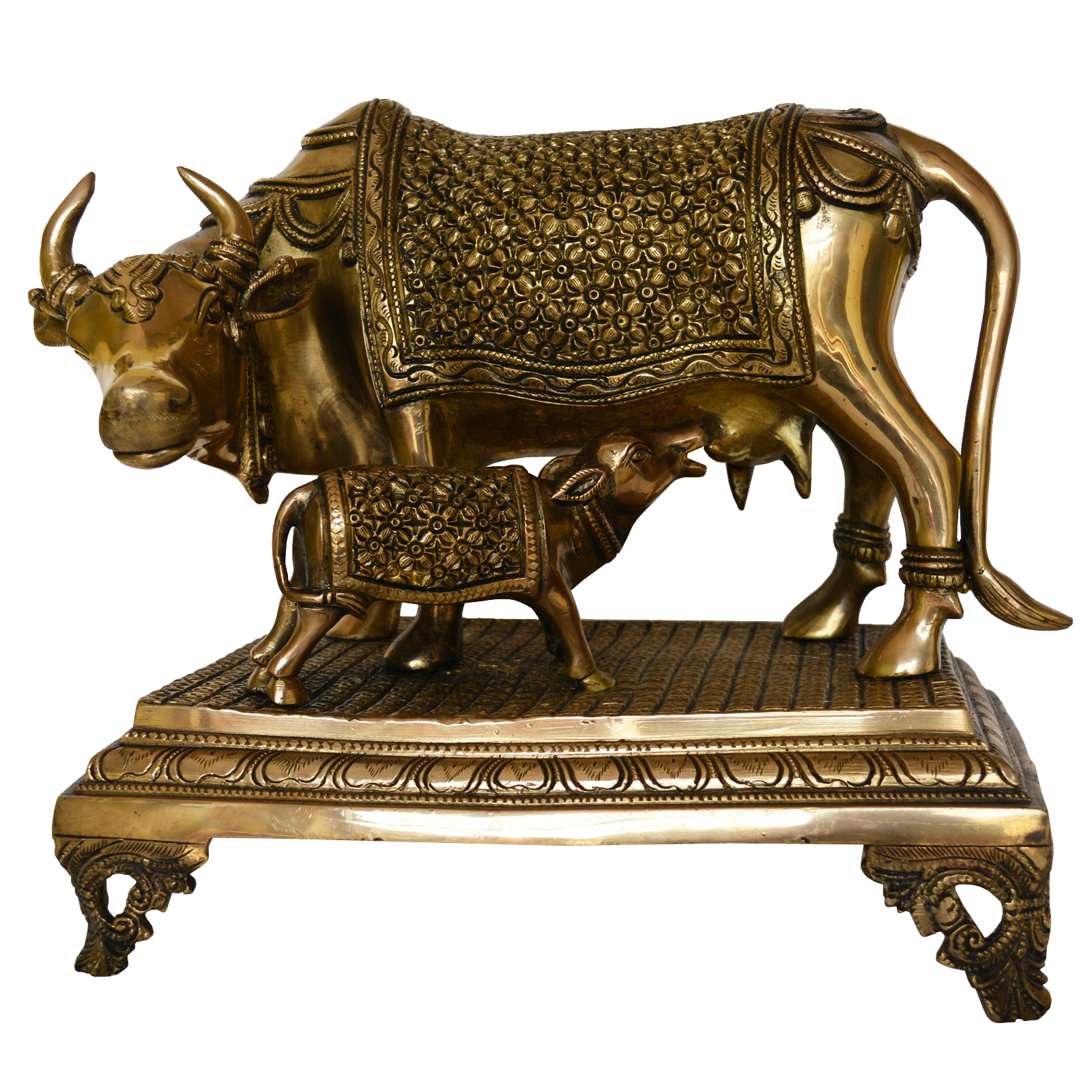 Cow & Calf Hand Carved Decorative Statue For Temple & Decor