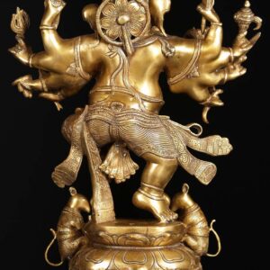 Brass Dancing Ganesh with 2 Rats 25″