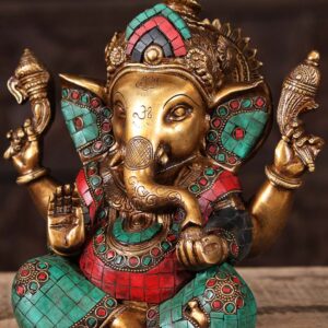 Brass Taj Ganesha with OM & Trident on Trunk 9