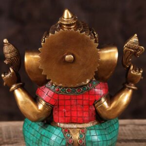 - He has a trident and OM tilak carved onto the base of his trunk with his vehicle, the rat, Mooshika resting on his left leg