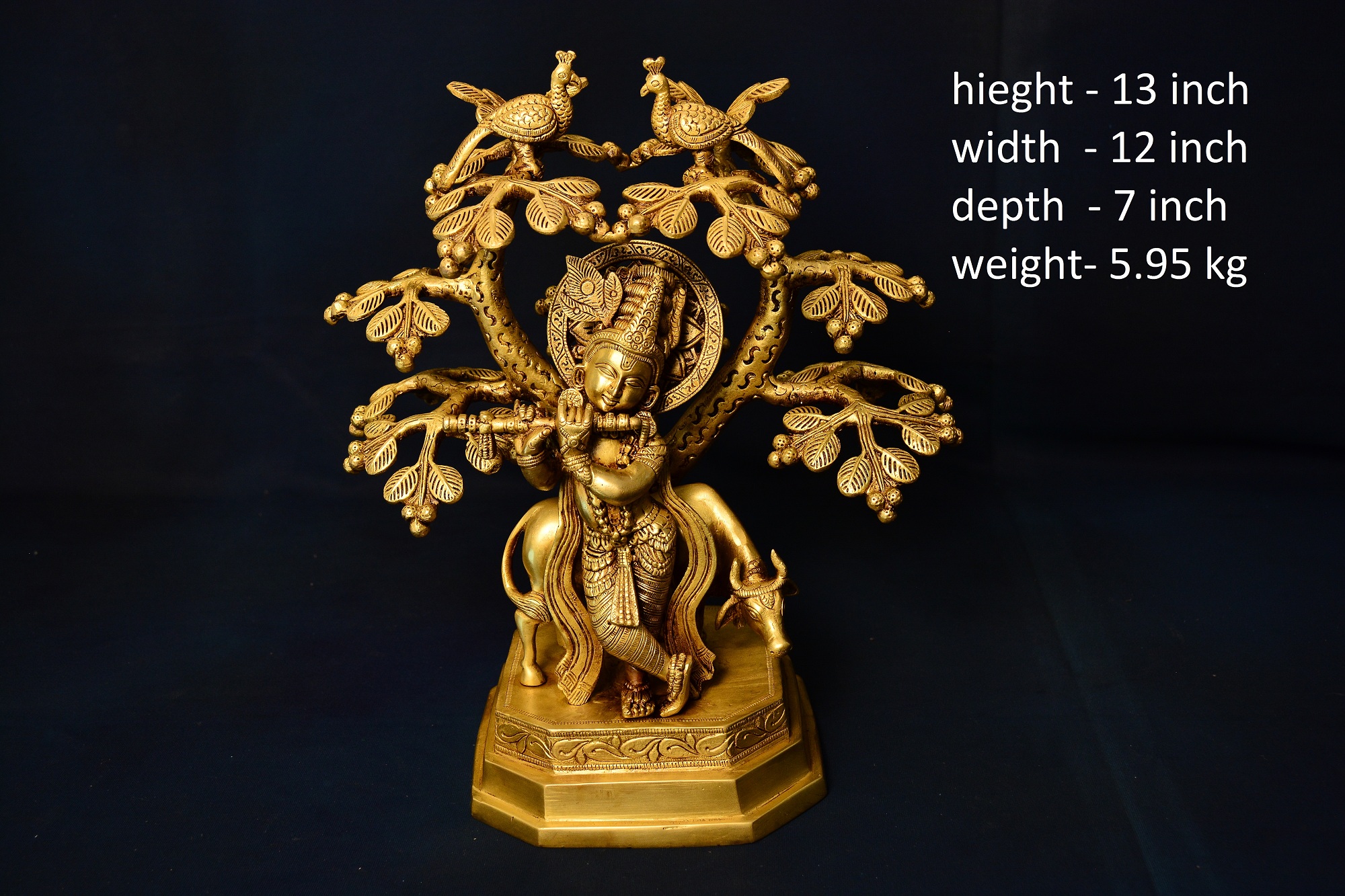 Brass Krishna Cow Under Kadamb Tree 13 Inch
