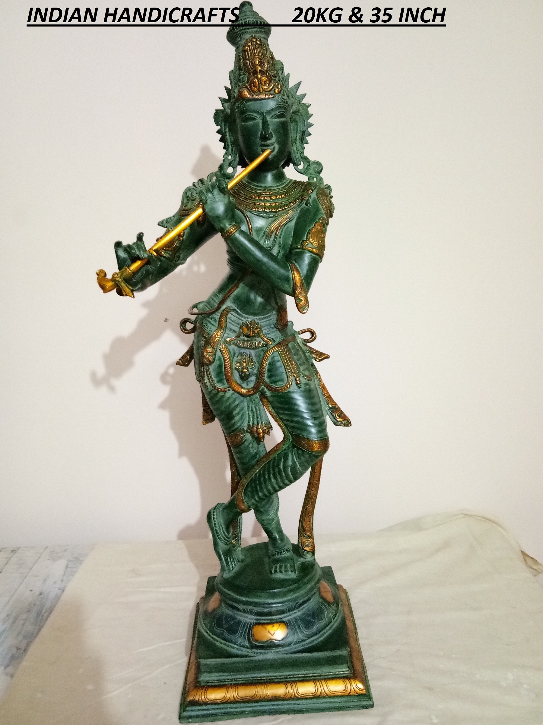 | Flute Playing Krishna Statue – Brass Handmade Sculpture – God Krishna Home Decor |