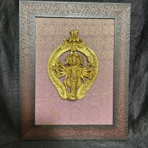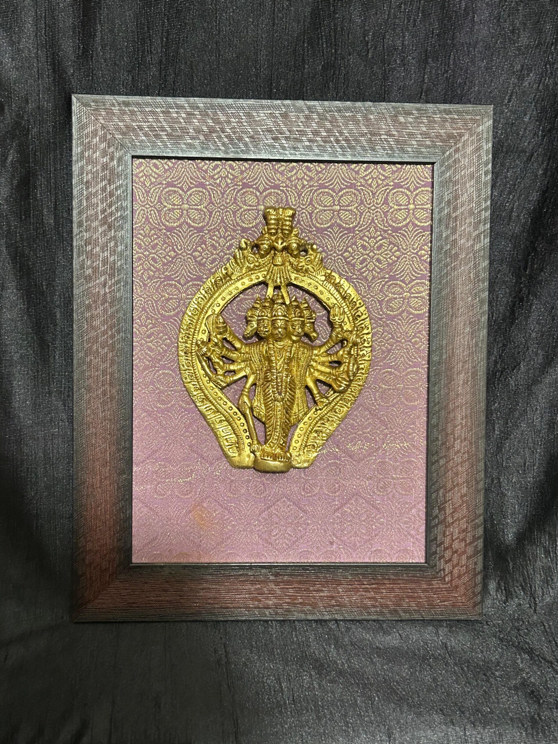 - The Framed God Brass hanuman panchmukhi On brocket cloth Wall Hanging by Indian Handicrafts is a stunning piece of brass wall decor. This exquisite wall hanging is made with premium quality raw brocket, offering a luxurious and elegant touch to any space. With its finely detailed brass idol, this product adds a divine and artistic element to your walls. Elevate your home decor with this unique and spiritually-inspired wall hanging.